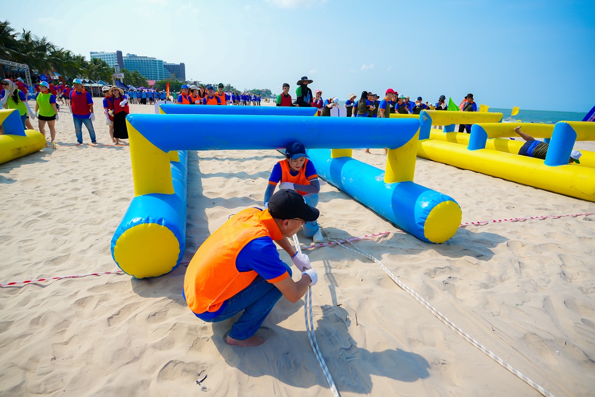 Chuỗi hoạt động teambuilding được thiết kế xoay quanh ba trục Thân – Tâm – Trí, thông qua các trò chơi thử thách vận động và phối hợp đội nhóm. Mỗi phần thi không chỉ đòi hỏi thể lực mà còn yêu cầu tư duy, chiến thuật và khả năng phối hợp. Giữa cái nắng gay gắt, những bước chạy, những lần vấp ngã rồi đứng dậy, từng thành viên không chỉ vượt qua thử thách, mà còn vượt qua chính giới hạn của mình. Ở đó, nội lực được khơi dậy, và giá trị của sự gắn kết, của việc “không ai bị bỏ lại phía sau” được cảm nhận rõ ràng hơn bao giờ hết.