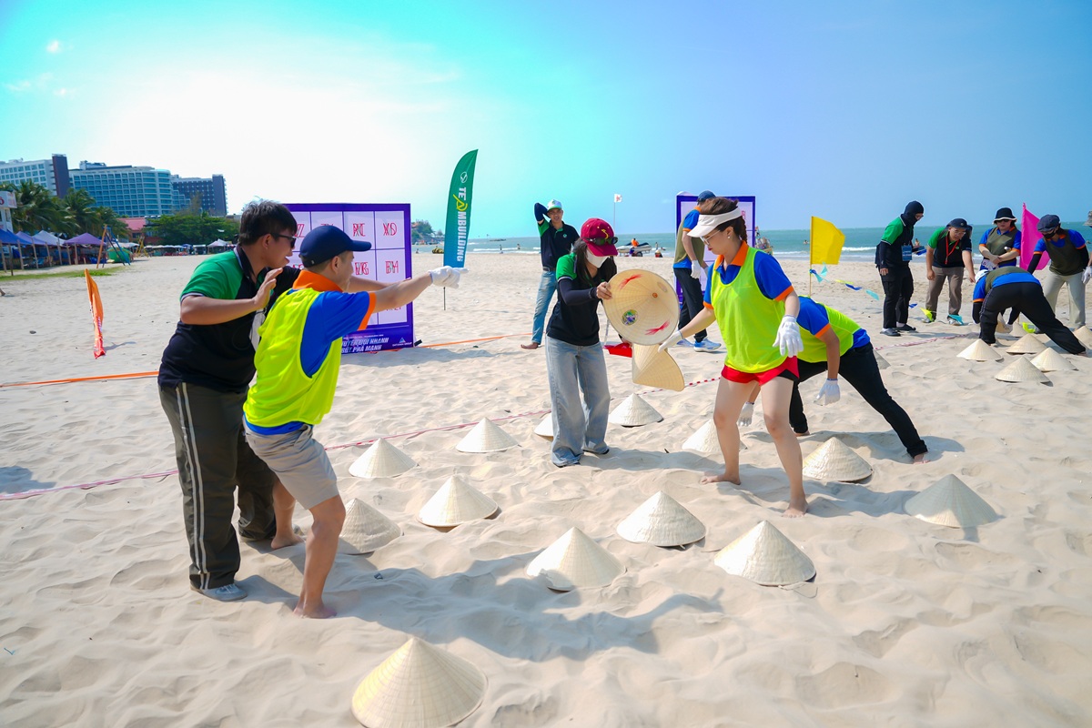 Chuỗi hoạt động teambuilding được thiết kế xoay quanh ba trục Thân – Tâm – Trí, thông qua các trò chơi thử thách vận động và phối hợp đội nhóm. Mỗi phần thi không chỉ đòi hỏi thể lực mà còn yêu cầu tư duy, chiến thuật và khả năng phối hợp. Giữa cái nắng gay gắt, những bước chạy, những lần vấp ngã rồi đứng dậy, từng thành viên không chỉ vượt qua thử thách, mà còn vượt qua chính giới hạn của mình. Ở đó, nội lực được khơi dậy, và giá trị của sự gắn kết, của việc “không ai bị bỏ lại phía sau” được cảm nhận rõ ràng hơn bao giờ hết.